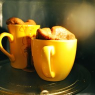 The muffin is prepared in a cup or glass. Instead of cocoa and coffee, you can add chocolate, previously melted in the microwave. If your muffins overheat, they will turn out crunchy, resembling cookies. If you want softer muffins, add more sour cream. You can customize the filling as desired: condensed milk instead of chocolate, nuts, and spices in various amounts. To avoid having to scrape the muffins off the microwave, the mixture should fill the cup halfway.