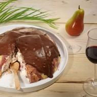 Spread the jam inside. Finely chop the nuts and dried fruits, prepare the cherries by removing the pits if necessary. Mix all of this with the ice cream and place the mixture inside the mold. Spread the cranberry sorbet on top. Close it all with the remaining strips, pressing them down tightly. Soak with port wine. Cover everything with plastic wrap and place it in the freezer for an hour.