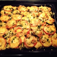 Grease a baking sheet with sunflower oil. All vegetables should be sliced into thin rounds.