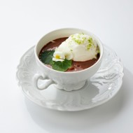 Pour the chocolate mixture with milk and gin over the ice cream in the bowl.