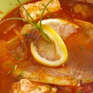 Thoroughly rinse and clean the mackerel. Cover with cold water and bring to a boil. Skim off the foam, add the onion, bay leaf, lemon, and cook for 20 minutes.