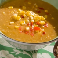 Spoon the mixture into bowls. Sprinkle a little corn in the center of each.