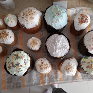 Place the dough on the table, divide it into portions, roughly according to the number of pans. Gently shape each piece of dough into a ball and carefully place it in the pan, filling it about halfway. Place the pans on a baking sheet and cover with a napkin. After 10–15 minutes, the dough will rise twice its size, and you can place it in the oven preheated to 212°F. Bake the kulich for 10 minutes at this temperature.