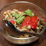 In a pan with vegetable oil, fry the eggplants, adding a little salt. Place them on a plate and let cool.