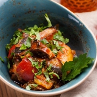 Serve the ajapsandali warm or completely cooled, with a piece of good bread.