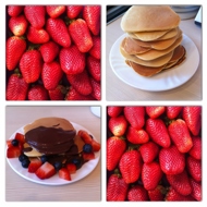 American Pancakes with Hot Chocolate and Berries