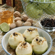 Pour this syrup over the apples and place in the cold. Before serving, drizzle the apples with whipped cream.