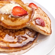 American-Style Pancakes with Strawberries and Bananas
