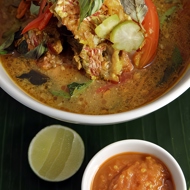 Ladle the soup into bowls and place a piece of fish in each. Serve immediately.