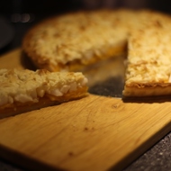Assemble the tart: layer the pumpkin on the bottom of the crust, draining the juice released by the pumpkin with the sugar, then add the apples. Take the leftover dough from the freezer and grate it over the apples. Place in the oven at 356°F for 20 minutes.