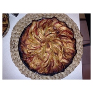 Grease a baking dish with butter. Pour the batter into the dish. Arrange the apples on top and press them into the batter. Add the berries (I used frozen blackberries and a bit of strawberries; blueberries would be even better) and gently press them in as well.