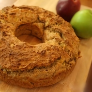 Mix both types of flour, add salt, the water with yeast, the melted butter, and knead everything at medium speed in a food processor, gradually adding the cooked apples.