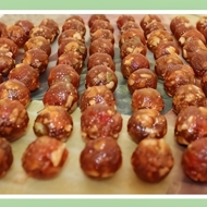 With wet fingers, form small balls and leave them on a cutting board for a while to dry.