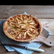 Layer the apples in the pan in 2 layers, sprinkling each layer with 1 tablespoon of sugar. Bake in the oven at 392°F for 20 minutes. Then remove the pie, pour the cream-egg mixture over it, but not to the very edge, as the filling will expand slightly, and return it to the oven for another 20-25 minutes until ready, when the filling is firm and golden. Five minutes before it's done, sprinkle with the remaining 2 tablespoons of brown sugar, and you can add a bit of cinnamon.