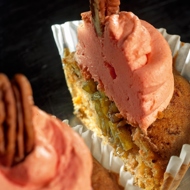 Decorate the cupcakes with cream cheese frosting and pecans.