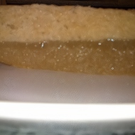 Line a cake mold with baking sleeve, cut along the seam and shaped to fit (the baking sleeve will help the finished apple jelly cake to come out easily), pour in the apple puree with the egg whites and gelatin, and place in the refrigerator for about 30–40 minutes.