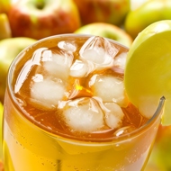 In a blender, combine the apple juice, lemon juice, and ice.