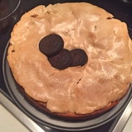 Spread the batter in the baking dish. Grate the apples and place them on top of the batter, then add the meringue mixture on top. Bake at 392°F for 40 minutes.