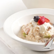 Garnish with berries (strawberries, raspberries, blueberries) on top.