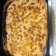 Spread the dough on a baking sheet, but do not press it down, as it should remain airy; do not leave any holes. Then spread the grated apples on top. Sprinkle with the remaining sugar. Top with the egg whites and then sprinkle with the remaining dough.