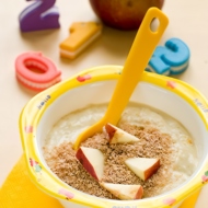 In a mixer, combine 60 ml of sour cream, 30 g of sugar, pieces of two peeled apples, and 5 ml of lemon juice. Blend for 30 seconds. Then add the soaked flakes and blend a little more. The porridge is ready.