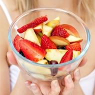 In a salad bowl, arrange the apple slices, strawberries, raspberries, drizzle with lemon juice, and sprinkle a little sugar on top.