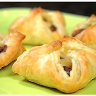 To close the turnovers, lift each corner of the square in turn and secure it over the filling. Press the diagonal seams well with your fingertips to prevent the filling from spilling out during baking.