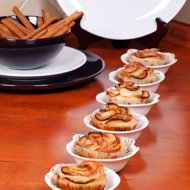 Gently combine both mixtures, being careful not to overmix to keep the batter light. Divide the mixture into the muffin cups, filling them three-quarters full. Top with the sliced apples and bake in the oven for 16–18 minutes until done. Let cool slightly and remove from the tin.