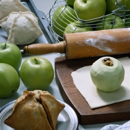 Roll out the puff pastry to a thickness of 0.5 cm, cut into squares large enough to wrap each apple.