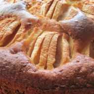 Place the apple quarters on top of the batter and sprinkle with cinnamon.