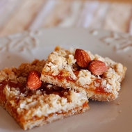 Spread each square with slightly warmed apricot jam or preserve, previously mixed with a strong foam made from 2 egg whites. Sprinkle the surface of the squares coated with this mixture with ground nuts.
