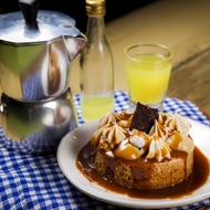 A dessert by chef John Smith from a popular restaurant in New York. Two dozen ingredients, including hazelnuts and hazelnut flour, sesame seeds, two types of cream, white chocolate—and two tablespoons of coffee.