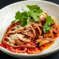Remove the stems and seeds from the bell pepper and slice it thinly.