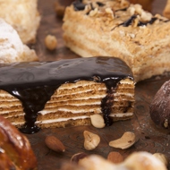Beat the eggs with sugar (2 cups), add the butter (200 g), baking soda activated with vinegar, and flour (4–5 cups). Place the mixture over a water bath, stirring until the batter thickens and changes color to light brown.