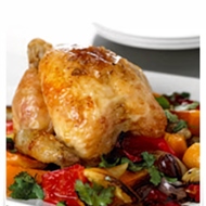 Put the chicken in a roasting pan and drizzle with olive oil.