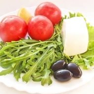 Cut the cherry tomatoes in half and add them to the salad, gently squeezing out some juice.