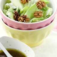Heat a skillet over medium heat and toast the walnuts until golden, about 2–3 minutes. Transfer to a bowl and let cool.