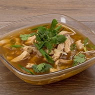 Place the noodles in a bowl, add the soybean sprouts and chili pepper, top with chicken, and pour over the broth. Garnish with cilantro and green onion, and serve.