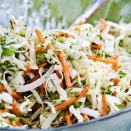 Add grated carrot, thinly sliced cabbage, green onion, and cilantro, and mix thoroughly.
