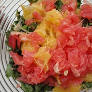 Peel the oranges and remove the thin transparent skin from the segments. Then, divide each segment of the flesh into 3 equal parts and add to the salad bowl.