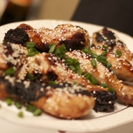 Increase the heat to maximum and stir-fry for 10 minutes, constantly mixing. Once the drumsticks are glazed, place them on a plate, garnish with sesame seeds and freshly chopped green onions.