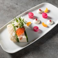 Serve the aspic with horseradish, salmon caviar, and thinly sliced kohlrabi.