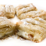 Preheat the oven to 356°F. Brush the pastries with the egg white mixture and sprinkle with chopped almonds. Bake for 30 minutes.