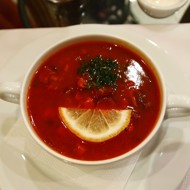 The borscht is ready; it's best served garnished with fresh herbs and a dollop of sour cream.