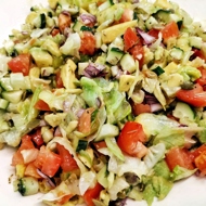 Chop the cucumber, preferably into smaller pieces, and add it to the other vegetables.