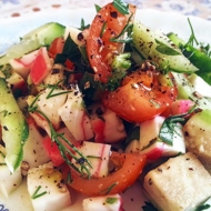 Season with salt, pepper, and herbs (to taste) and drizzle with yogurt or a mild garlic sauce.