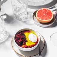 On one side, spread the wild berry jam, and on the other side, add a tablespoon of Greek yogurt.