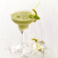Pour the daiquiri into a glass, then use pomegranate juice to draw a zigzag pattern on the surface of the cocktail — and with a thin straw, you can create a few hearts with the juice.
