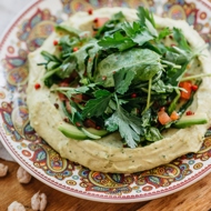 Avocado Hummus with Arugula and Tomatoes