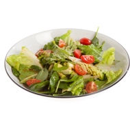 Tear the romaine lettuce into a large bowl, add the spinach and arugula leaves, add the avocado and cherry tomatoes, toss with the dressing, season with pepper to taste, and serve.